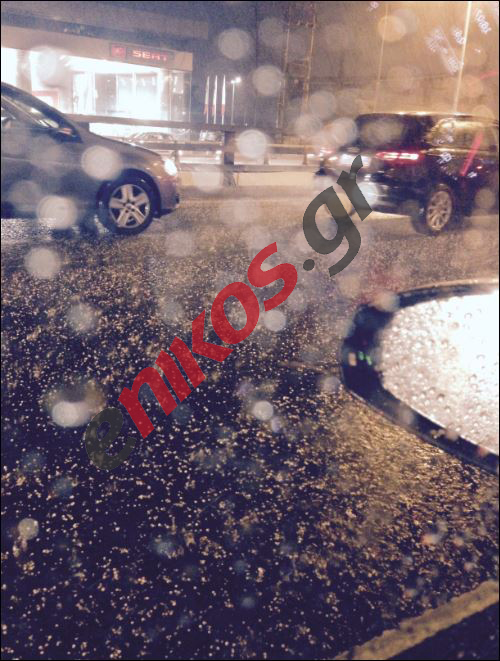 Σφοδρή χαλαζόπτωση έπληξε πριν από λίγη ώρα την Αττική, ενώ όπως φαίνεται και στη φωτογραφία που έστειλε αναγνώστης του enikos.gr, ο δρόμος στην λεωφόρο Κηφισίας έχει «στρωθεί» από το χαλάζι.