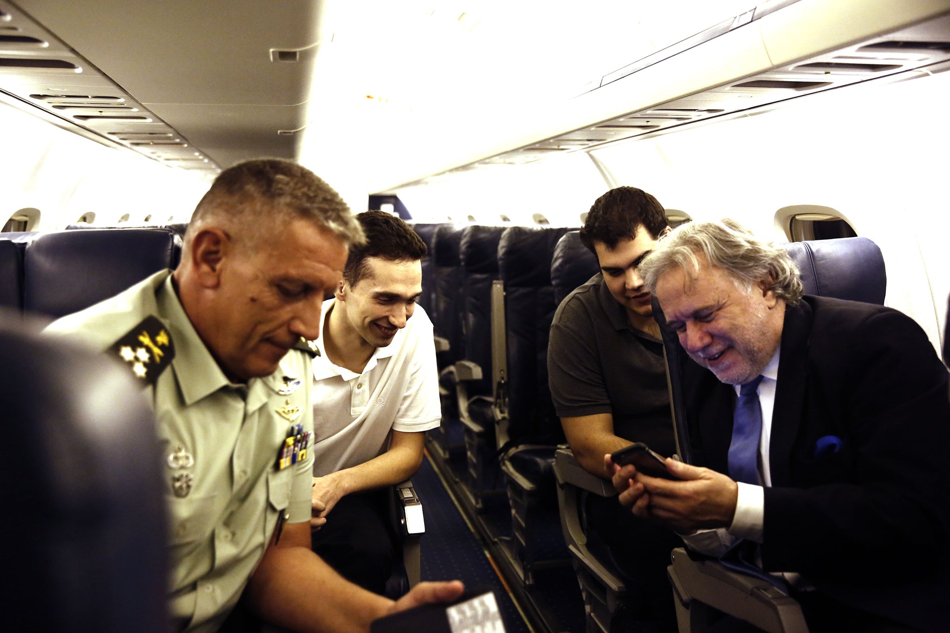 Δεν έλειπαν τα χαμόγελα κατά τη διάρκεια της επιστροφής των δύο Ελλήνων στρατιωτικών από την Αδριανούπολη. Ο φωτογραφικός φακός απαθανάτισε τον Δημήτρη Κούκλατζη και τον Άγγελο Μητρετώδη μέσα στο Πρωθυπουργικό αεροσκάφος να συνομιλούν με τον αναπληρωτή υπουργό Εξωτερικών Γιώργο Κατρούγκαλο και τον υπαρχηγό ΓΕΕΘΑ Κωνσταντίνο Φλώρο. Μάλιστα κατά τη διάρκεια της πτήσης τσούγκρισαν τα ποτήρια τους πίνοντας μπύρα.