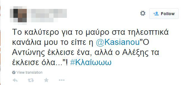 Το «μαύρο» που έπεσε στις τηλεοράσεις δεν άφησαν, φυσικά, ασχολίαστο οι χρήστες του twitter.