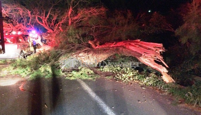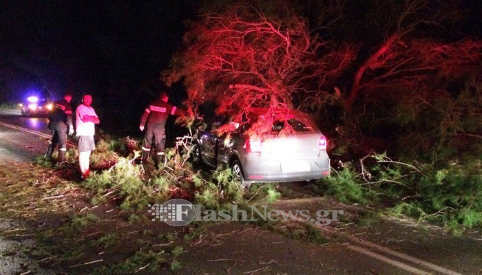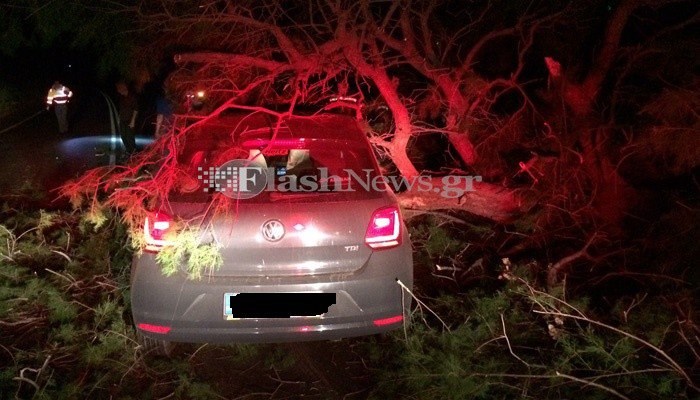Χανιά: Δέντρο καταπλάκωσε διερχόμενο αυτοκίνητο στην εθνική οδό – ΦΩΤΟ