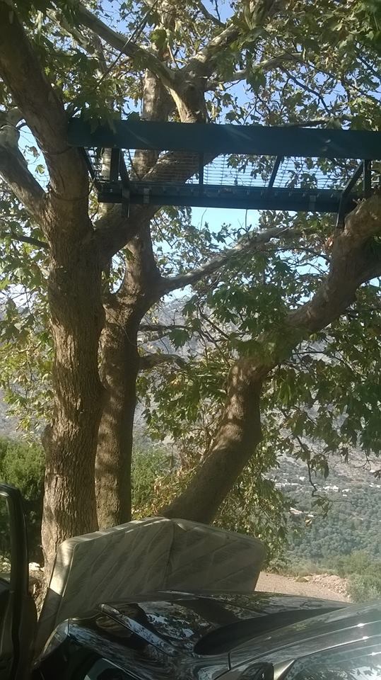 Γνωστός Χανιώτης παραδοσιακός καλλιτέχνης τοποθέτησε το κρεβάτι του πάνω σε ένα πλάτανο στην Ασή Γωνιά Χανίων.