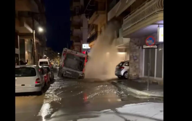Απορριμματοφόρο έπεσε σε λακκούβα που άνοιξε στον δρόμο έπειτα από καθίζηση στην Ξάνθη. Το όχημα με τη δύναμη που έπεσε, έσπασε αγωγό της ΔΕΥΑΞ (Δημοτική Επιχείρηση Ύδρευσης Αποχέτευσης Ξάνθης) και τα νερά έφτασαν μέχρι τον πρώτο όροφο πολυκατοικίας.