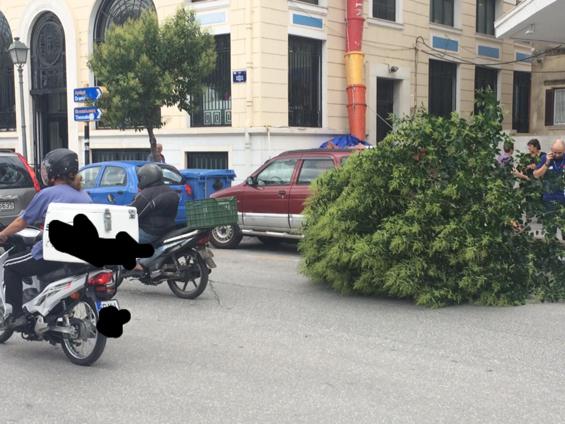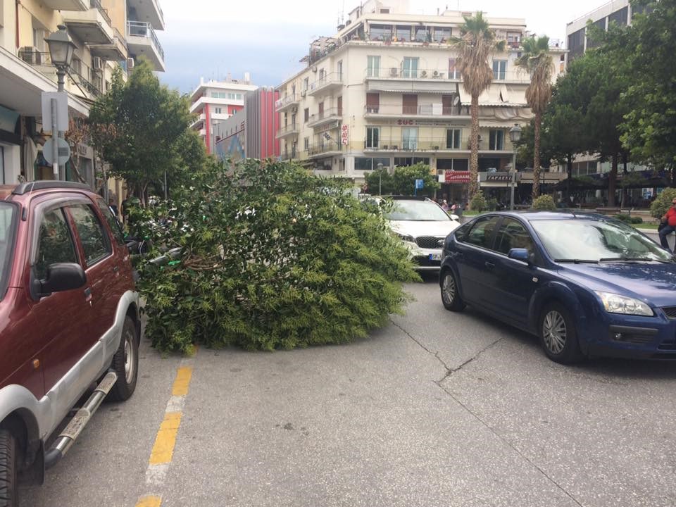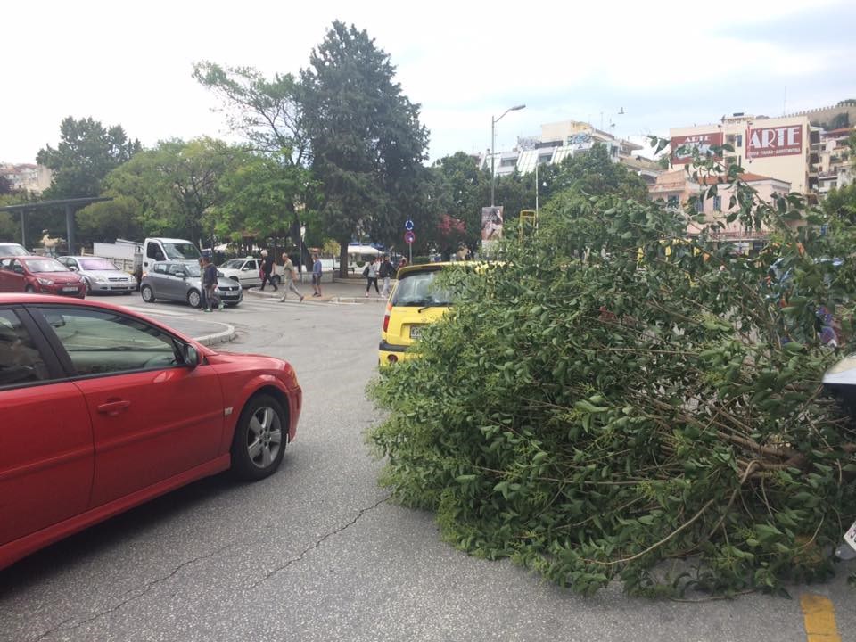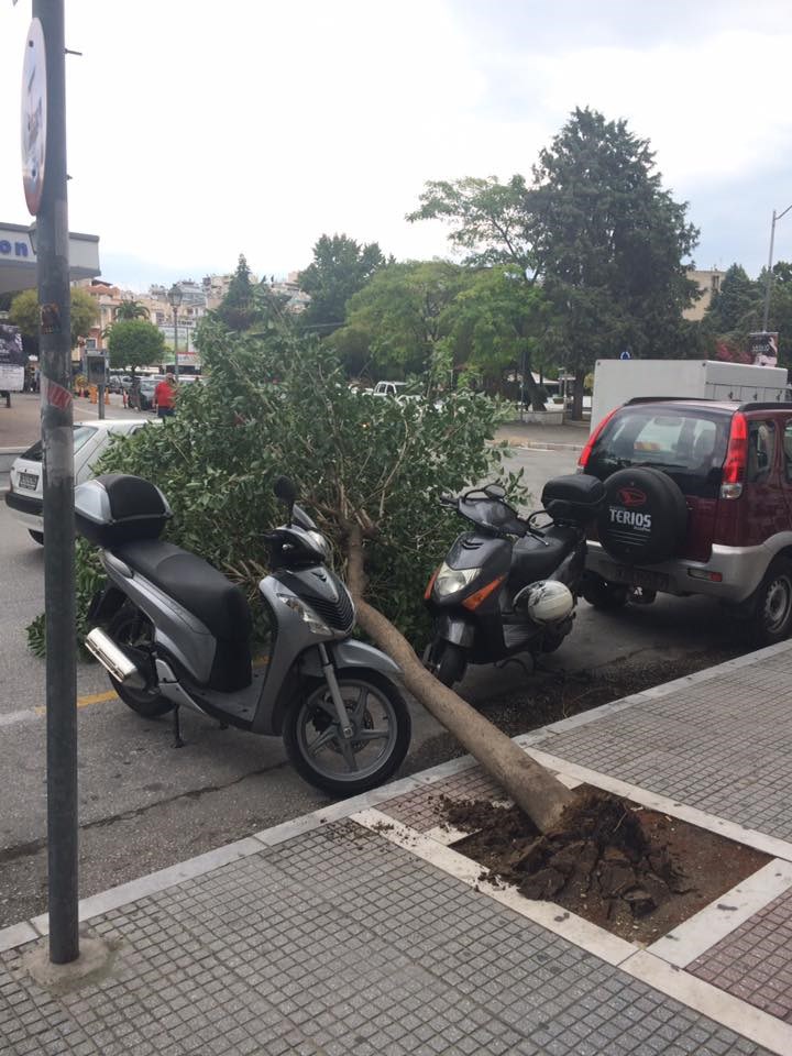 Αιτία ένα δέντρο, το οποίο ξεριζώθηκε από τους ισχυρούς ανέμους που έπνεαν στην περιοχή εξαιτίας της κακοκαιρίας. Το δέντρο έπεσε στο έδαφος δίπλα σε αυτοκίνητα και μοτοσικλέτες, καλύπτοντας με τον όγκο του μια ολόκληρη λωρίδα, με συνέπεια να δημιουργηθεί πρόβλημα στην κυκλοφορία.