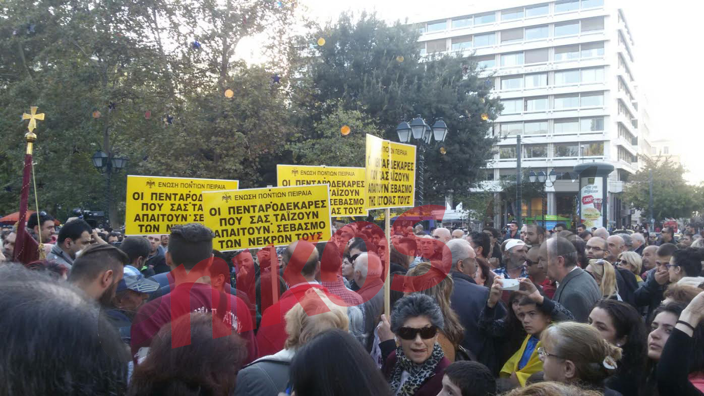 Συγκέντρωση διαμαρτυρίας στο Σύνταγμα, πραγματοποιούν οι Πόντιοι μετά από κάλεσμα της Παμποντιακής Ομοσπονδίας Ελλάδος με αφορμή τις δηλώσεις του υπουργού Παιδείας, Νίκου Φίλη. Η ομοσπονδία χαρακτήρισε τον κ.Φίλη «αρνητή του χειρότερου Εγκλήματος κατά της Ανθρωπότητας».