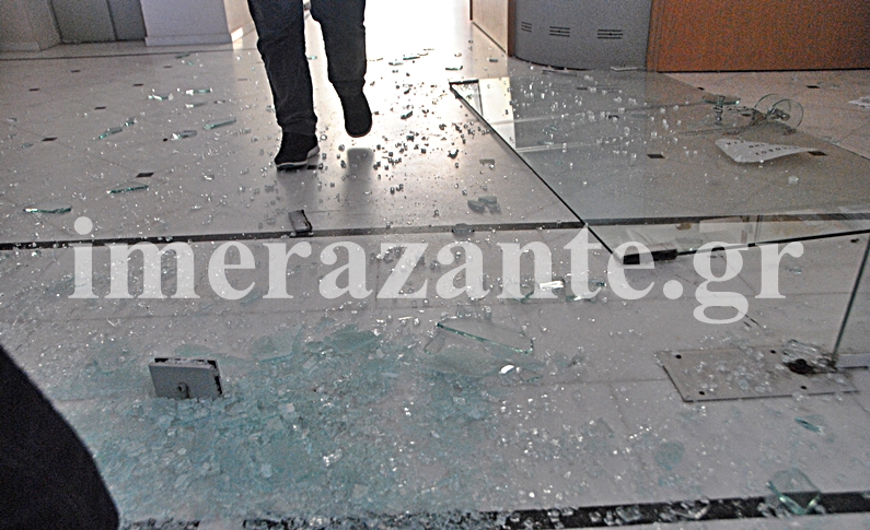 Παράλληλα, μια ομάδα νεαρών έσπασε την γυάλινη πόρτα του δημαρχείου Ζακύνθου, η οποία από το πρωί ήταν κλειδωμένη.