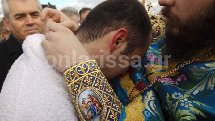 Σε λυγμούς ξέσπασε ένας νεαρός υπαξιωματικός που έπιασε τον σταυρό στη Λάρισα ανήμερα των Φώτων.