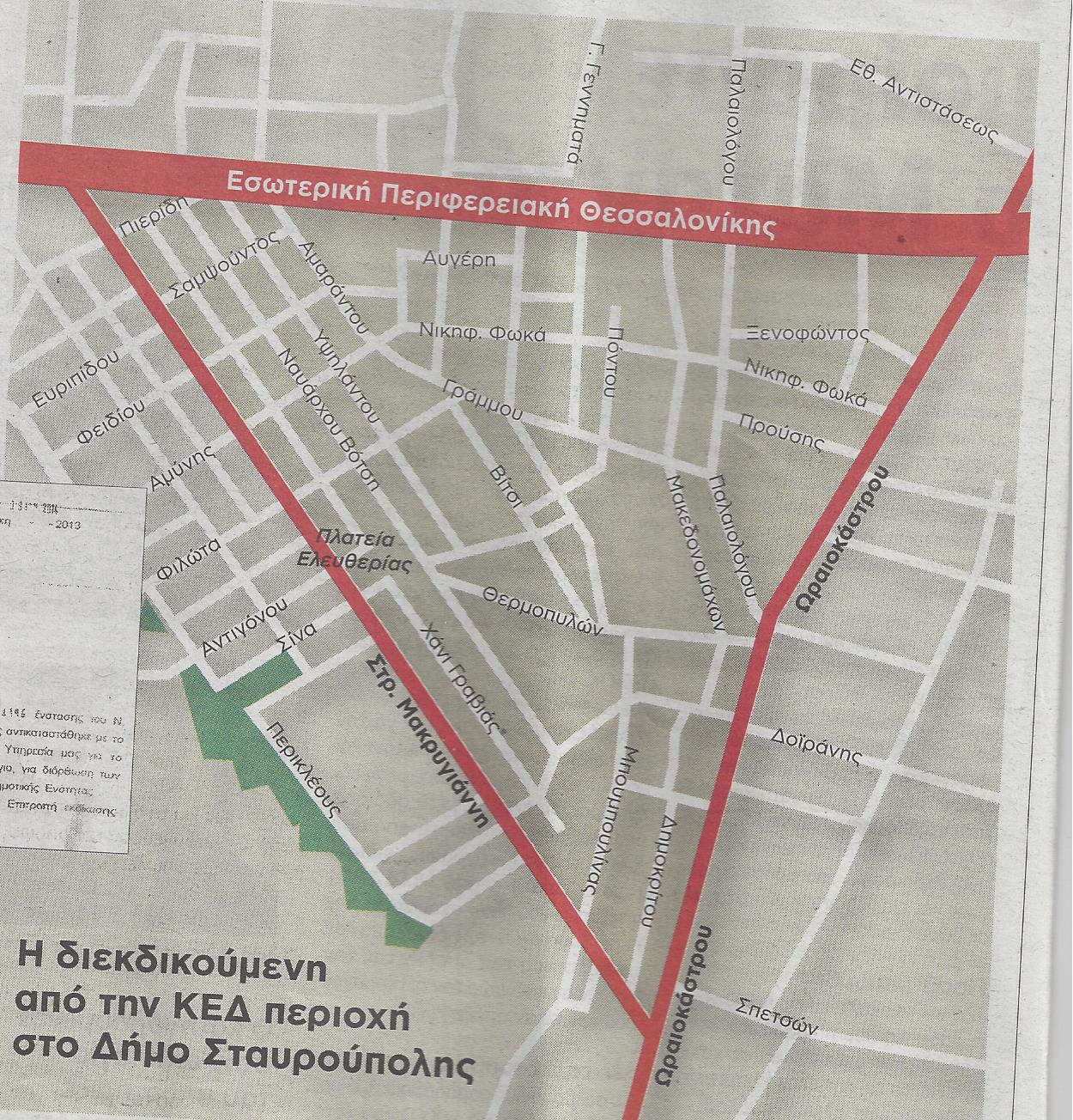 Συγκεκριμένα, πρόκειται για 43 στρέμματα του Δήμου Σταυρούπολης από την οδό Ωραιοκάστρου μέχρι τον περιφερειακό, τα οποία η Κτηματική Υπηρεσία θεωρεί ότι είναι ανταλλάξιμα και εγείρει απαιτήσεις επί της κυριότητας τους. Σύμφωνα με τη δημοτική αρχή, οι συγκεκριμένες εκτάσεις είχαν δοθεί προ πολλών ετών ως αποζημίωση από το Δημόσιο σε μέλη οικογενειών που είχαν συμμετάσχει στον Μακεδονικό Αγώνα και στη συνέχεια μεταβιβάστηκαν σε εργολάβους και άλλους ιδιοκτήτες.