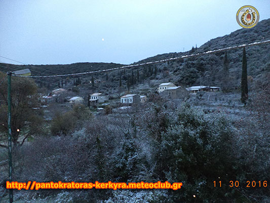 Η πυκνή χιονόπτωση άρχισε τα ξημερώματα της Τετάρτης ενώ στα άσπρα ντύθηκαν οι στέγες των σπιτιών στα παρακείμενα ορεινά χωριά Πετάλεια και Στρινύλα. Η πτώση της θερμοκρασίας είναι αισθητή και στην πόλη της Κέρκυρας.