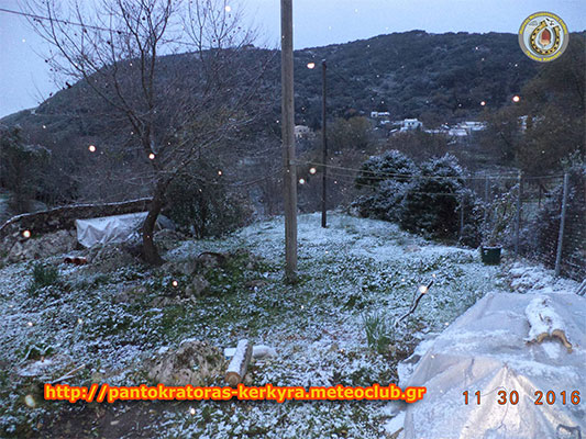 Οι πρώτες νιφάδες χιονιού έκαναν την εμφάνιση τους στο βουνό του Παντοκράτορα στην Κέρκυρα.