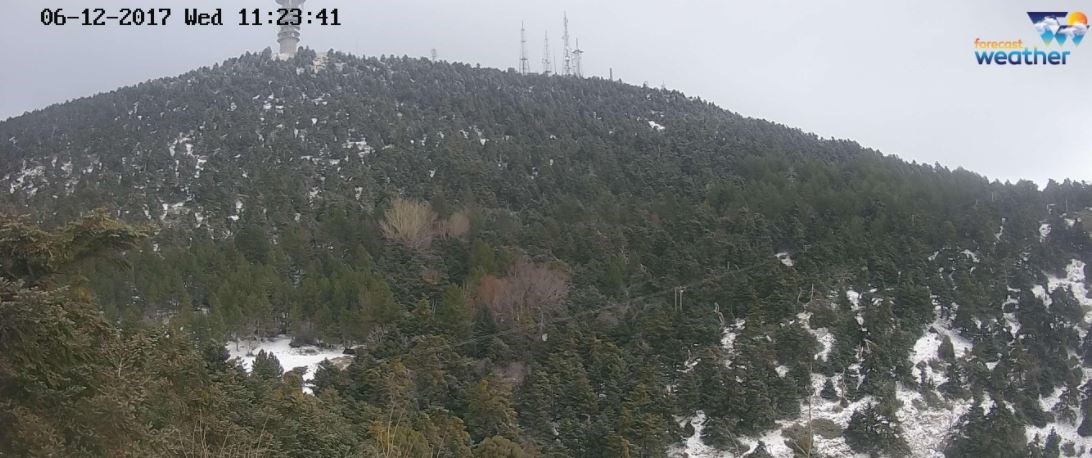Στα λευκά έχει “ντυθεί” το βουνό της Πάρνηθας. Οι χαμηλές θερμοκρασίες και τα χιόνια συνθέτουν το σκηνικό του καιρού σε αρκετές περιοχές της χώρας.