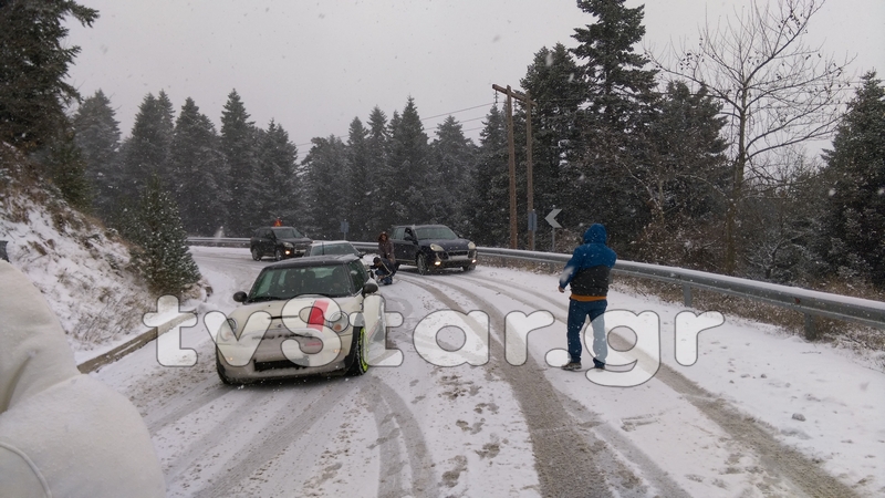 Πυκνό χιόνι πέφτει και στην Δυτική Φθιώτιδα με αποτέλεσμα να είναι απαραίτητη η χρήση αντιολισθητικών αλυσίδων στο εθνική οδό Λαμίας – Καρπενησίου από το 54ο χιλιόμετρο.
