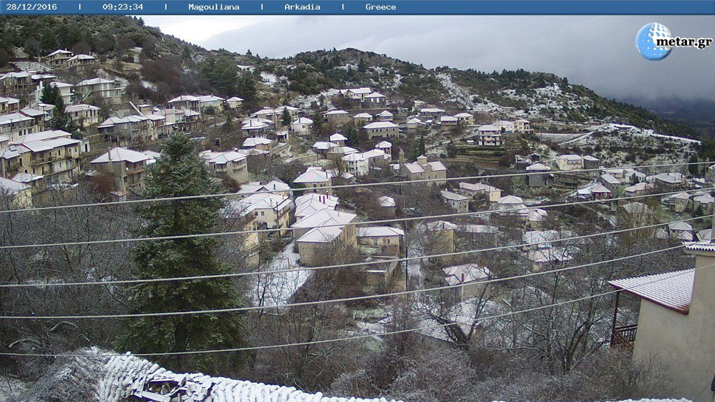 Το χωριό Μαγούλιανα έχει ντυθεί στα λευκά, ενώ χιονίζει και στη Βυτίνα, καθώς και στις γύρω περιοχές. Στην Τρίπολη υπάρχει συννεφιά, ενώ δεν αποκλείεται τις επόμενες ώρες να χιονίσει και στο κέντρο της πόλης.