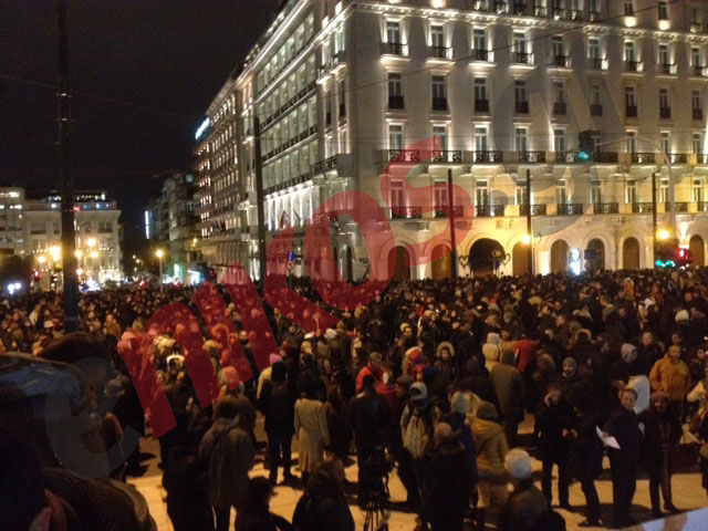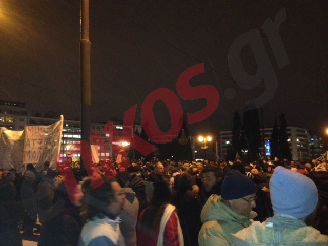 Ελαφρά χιονόπτωση σημειώνεται αυτή την ώρα στην πλατεία Συντάγματος, όπου βρίσκονται οι συγκεντρωμένοι πολίτες.