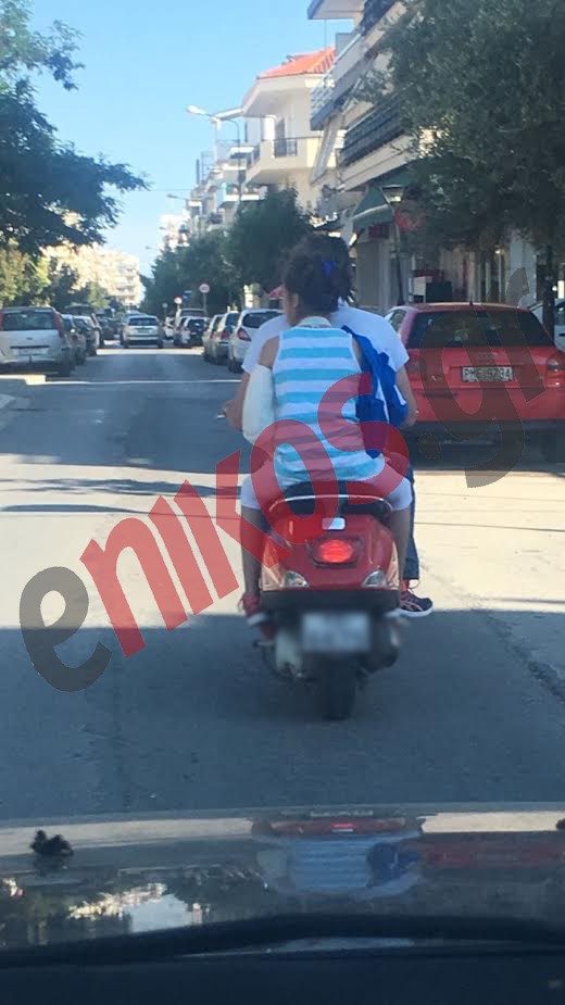 Καθημερινό φαινόμενο έχει γίνει δυστυχώς, η ανευθυνότητα των οδηγών δικύκλων στους ελληνικούς δρόμους.Οι οδηγοί αδιαφορούν για την ασφάλειά τους, αφού συνήθως δεν φορούν κράνος ενώ οδηγούν, αλλά πολύ συχνά θέτουν σε κίνδυνο και την ζωή μικρών παιδιών.Σχεδόν καθημερινά, βλέπουμε γονείς, οι οποίοι βάζουν το παιδί τους στο πίσω μέρος του δικύκλου χωρίς κράνος. Άλλες φορές, συναντάμε το φαινόμενο γονείς να βάζουν και δύο παιδιά πάνω στο δίτροχο.Σε νέα φωτογραφία που μας έστειλε αναγνώστης του enikos.gr, σε δρόμο της Αλεξανδρούπολης, βλέπουμε ένα ανήλικο κοριτσάκι στο πίσω μέρος του δικύκλου, το οποίο μάλιστα έχει δεμένο το αριστερό του χέρι με γύψο, και φυσικά δεν φορά κράνος.