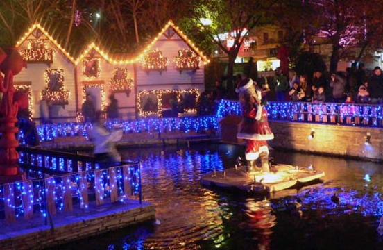 Στην τοποθεσία του φράγματος, κάτω από τα πεύκα και τα πλατάνια, διαμορφώθηκε ένας χώρος γεμάτος από σπιτάκια, χιλιάδες φωτάκια και τραγούδια, κουκλοθέατρο και δρώμενα βασισμένα στις αγαπημένες συνήθειες και τις παραδόσεις των ημερών.