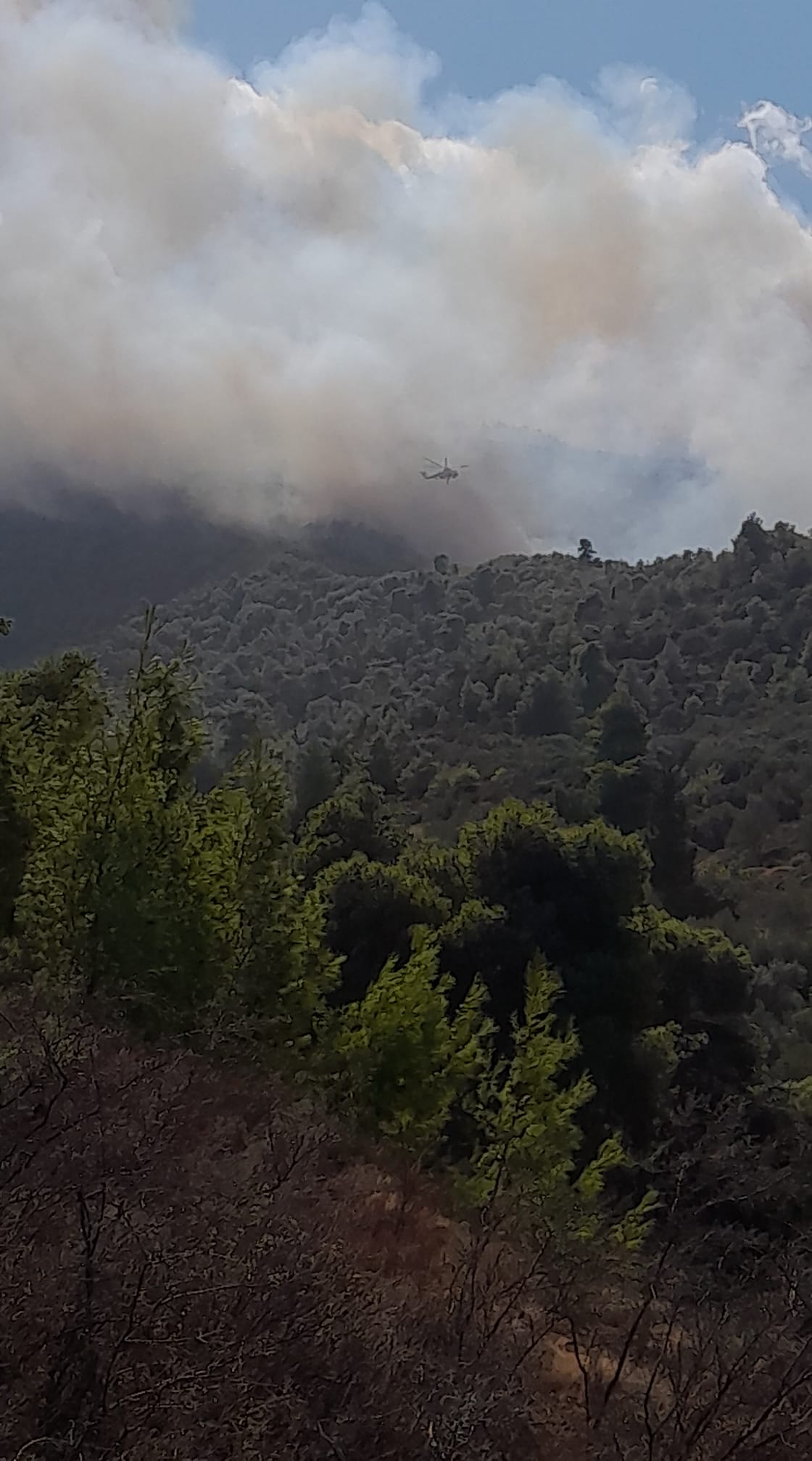 Σύμφωνα με την Πυροσβεστική, η πυρκαγιά καίει σε δύσβατο σημείο, χωρίς να απειλείται κατοικημένη περιοχή.