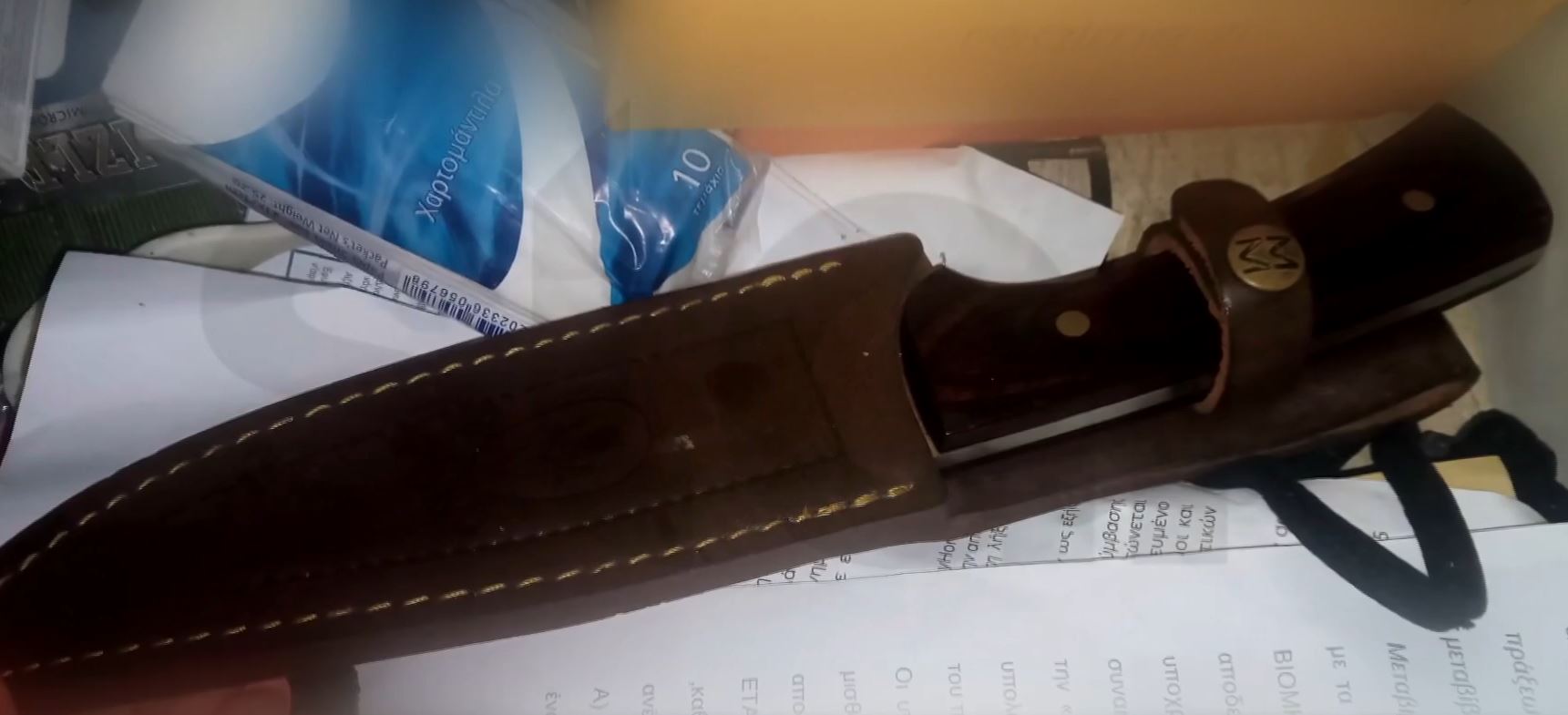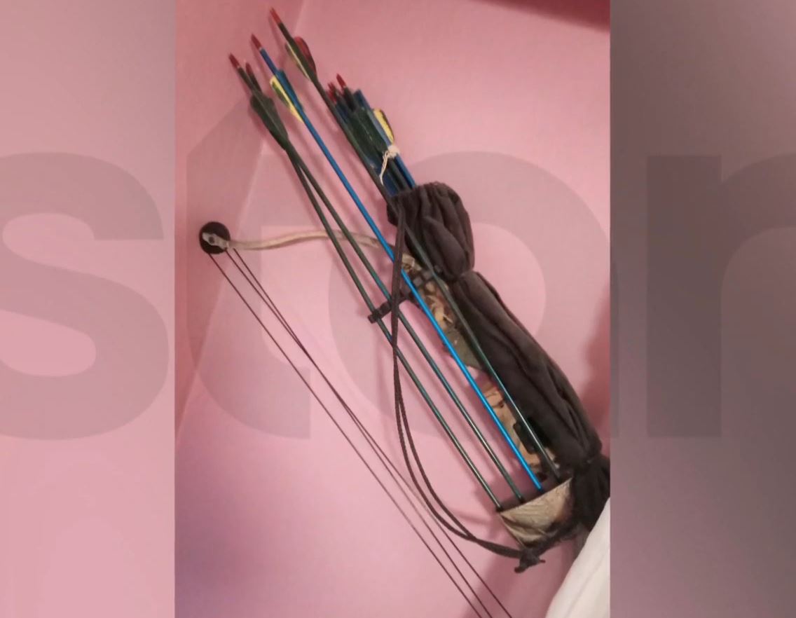 Η σύζυγος παρέδωσε στις Αρχές το μαχαίρι και το τόξο που ανήκουν στον κατηγορούμενο. Τα είχε αγοράσει για κυνήγι είπε στους αστυνομικούς αναφέροντας ότι η ίδια φοβόταν και μόνο που τα έβλεπε στο σπίτι.