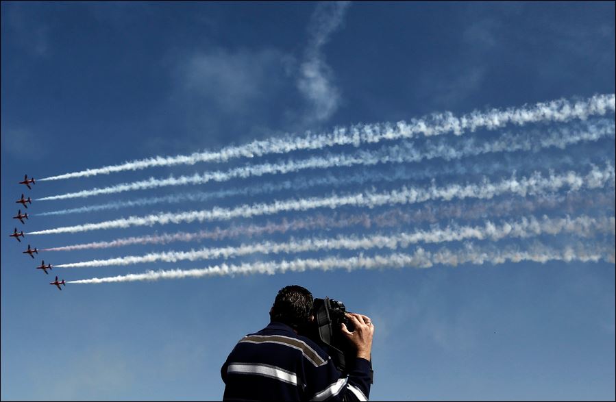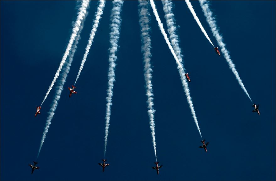 Το ακροβατικό Σμήνος της Βρετανικής Αεροπορίας «Red Arrows» πραγματοποίησε επιδείξεις στο αεροδρόμιο της Τανάγρας. Όπως θα δείτε στις φωτογραφίες και το βίντεο το θέαμα ήταν εντυπωσιακό. Να σημειωθεί ότι τα «Red Arrows» βρίσκονται στην 114 Πτέρυγα Μάχης στην Τανάγρα από τις 18 Μαρτίου εκτελώντας τμήμα της εαρινής εκπαίδευσής τους.