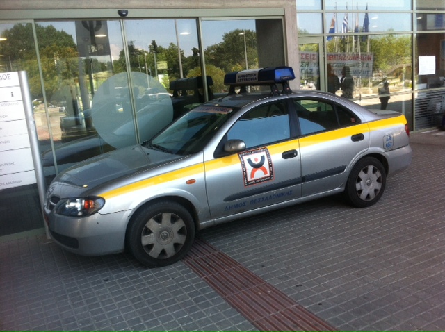 Οι εργαζόμενοι έχουν κλείσει όλες τις εισόδους του κτιρίου, τοποθετώντας αυτοκίνητα της δημοτικής αστυνομίας.