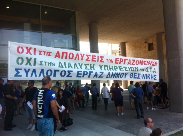 Στην κατάληψη του Δημαρχείου Θεσσαλονίκης έχουν προχωρήσει από νωρίς το πρωί οι εργαζόμενοι του δήμου διαμαρτυρόμενοι για τα μέτρα της διαθεσιμότητας.