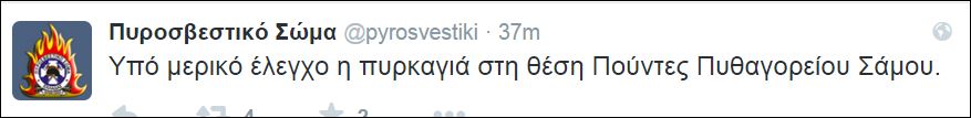 Υπό μερικό έλεγχο τέθηκε η φωτιά που ξέσπασε στην περιοχή Πούντες Πυθαγορείου της Σάμου, σύμφωνα με την Πυροσβεστική.