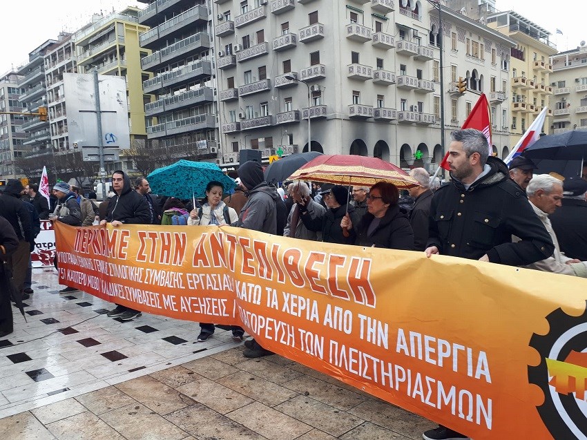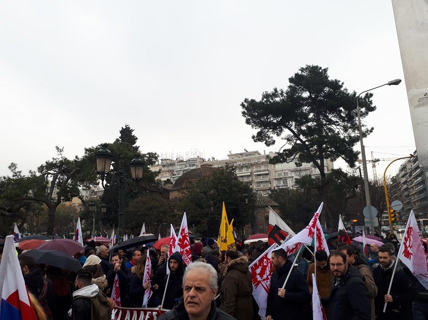 Συγκέντρωση διαμαρτυρίας πραγματοποιούν αυτή την ώρα μέλη του ΠΑΜΕ στο κέντρο της Θεσσαλονίκης, στο πλαίσιο των απεργιακών τους κινητοποιήσεων, κατά του πολυνομοσχεδίου.