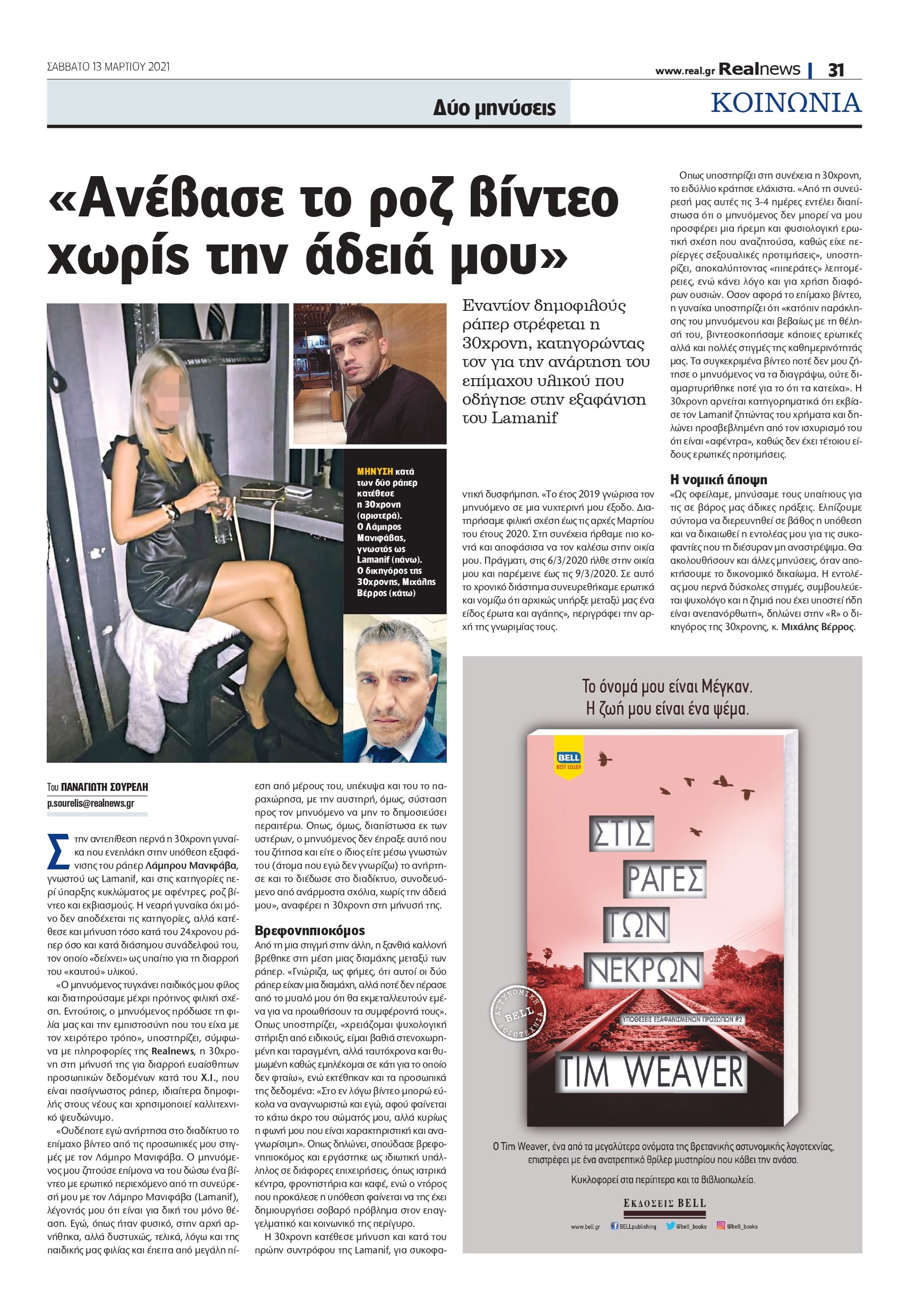 Στην αντεπίθεση περνά η 30χρονη γυναίκα που ενεπλάκη στην υπόθεση εξαφάνισης του ράπερ Λάμπρου Μανιφάβα, γνωστού ως Lamanif, και στις κατηγορίες περί ύπαρξης κυκλώματος με αφέντρες, ροζ βίντεο και εκβιασμούς. Η νεαρή γυναίκα όχι μόνο δεν αποδέχεται τις κατηγορίες, αλλά κατέθεσε και μήνυση τόσο κατά του 24χρονου ράπερ όσο και κατά διάσημου συνάδελφού του, τον οποίο «δείχνει» ως υπαίτιο για τη διαρροή του «καυτού» υλικού.