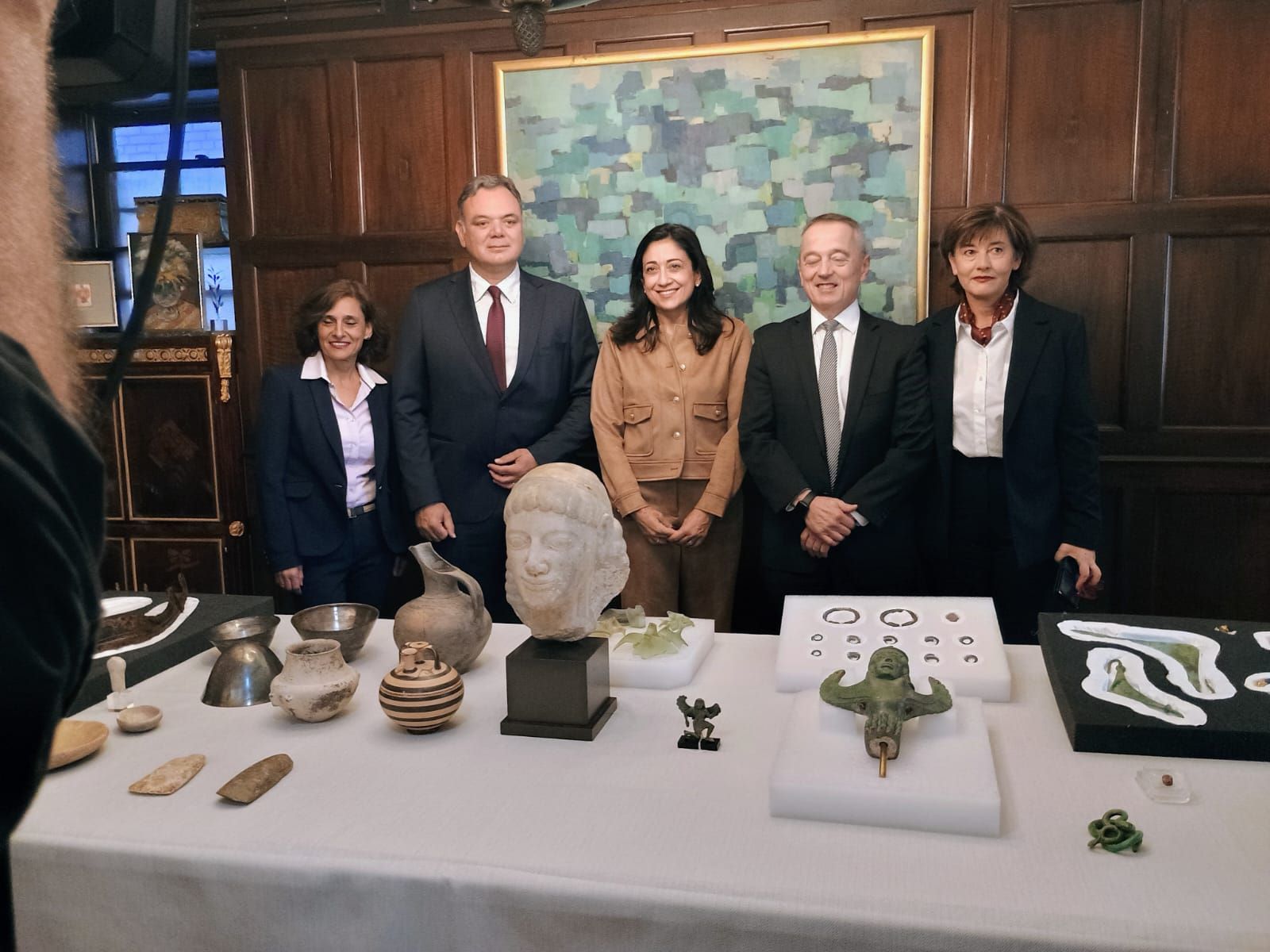 Είκοσι εννέα αρχαία αντικείμενα παραδόθηκαν στην Ελλάδα σήμερα, Παρασκευή 3 Οκτωβρίου, από τον επικεφαλής της Antiquities Trafficking Unit, Ματθαίο Μπογδάνο (Matthew Bogdanos) Αντιεισαγγελέα στην Εισαγγελία του Μανχάταν, σε ειδική τελετή που πραγματοποιήθηκε στο Γενικό Προξενείο της Νέας Υόρκης, παρουσία του Γενικού Γραμματέα Πολιτισμού Γεωργίου Διδασκάλου, της Γενικής Προξένου της Ελλάδας στη Νέα Υόρκη Ιφιγένειας Καναρά και στελεχών της Διεύθυνσης Τεκμηρίωσης και Προστασίας Πολιτιστικών Αγαθών.