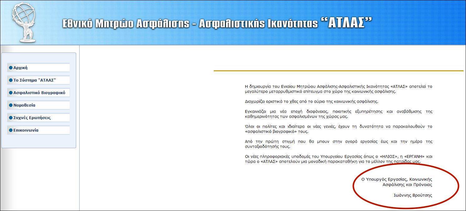 Συγκεκριμένα, στην αρχική σελίδα του ιστότοπου www.atlas.gov.gr, αντί για το όνομα του υπουργού Εργασίας, Πάνου Σκουρλέτη, εμφανίζεται το όνομα του πρώην υπουργού Εργασίας, Γιάννη Βρούτση.