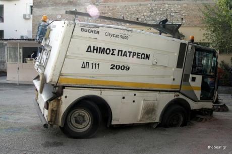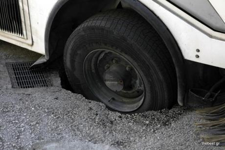 Ένα μέρος του προαυλίου του σχολικού συγκροτήματος της Αγίας Βαρβάρας στην Πάτρα υποχώρησε σήμερα το πρωί, με αποτέλεσμα ένα μηχάνημα του δήμου που εκτελούσε εργασίες, να πέσει μέσα.
