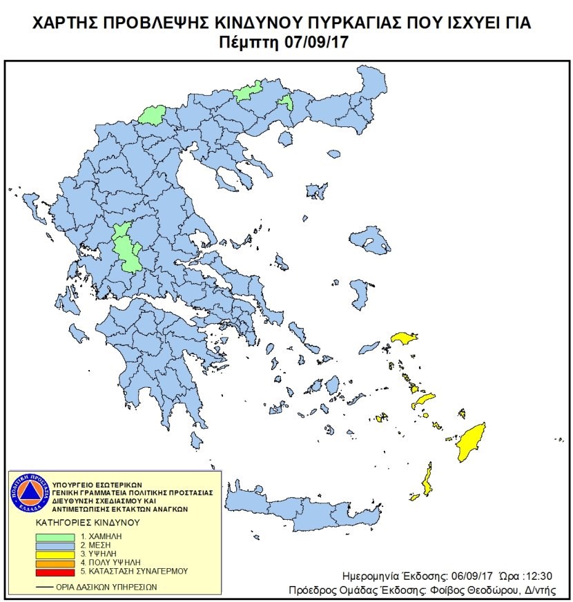 Στα Δωδεκάνησα και τη Σάμο προβλέπεται υψηλός κίνδυνος (δείκτης 3) πυρκαγιάς σήμερα, σύμφωνα με τον χάρτη πρόβλεψης.