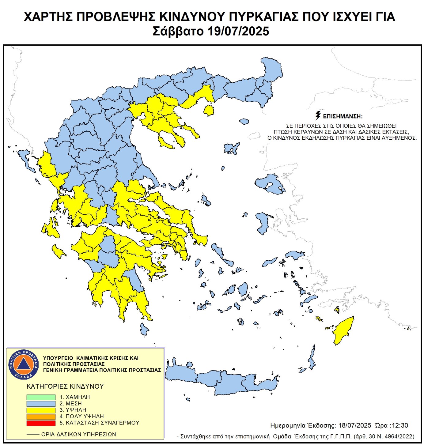 ⚠️ Χάρτης Πρόβλεψης Κινδύνου 🔥για αύριο Σάββατο 19/07