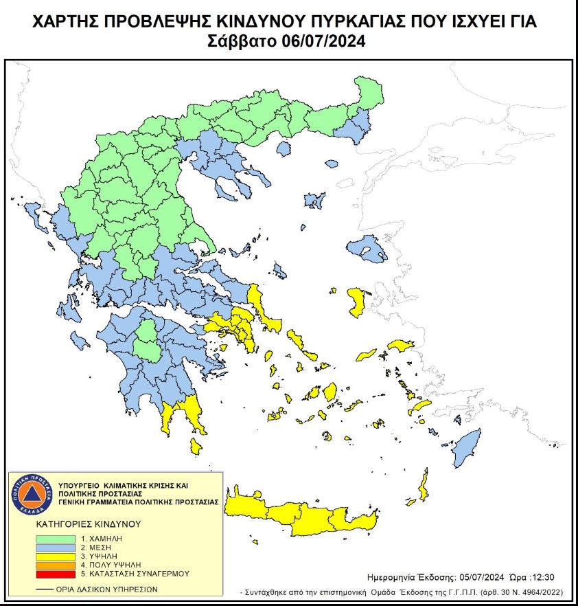 ⚠️ Χάρτης Πρόβλεψης Κινδύνου Πυρκαγιάς 🔥 για αύριο Σάββατο 6/7