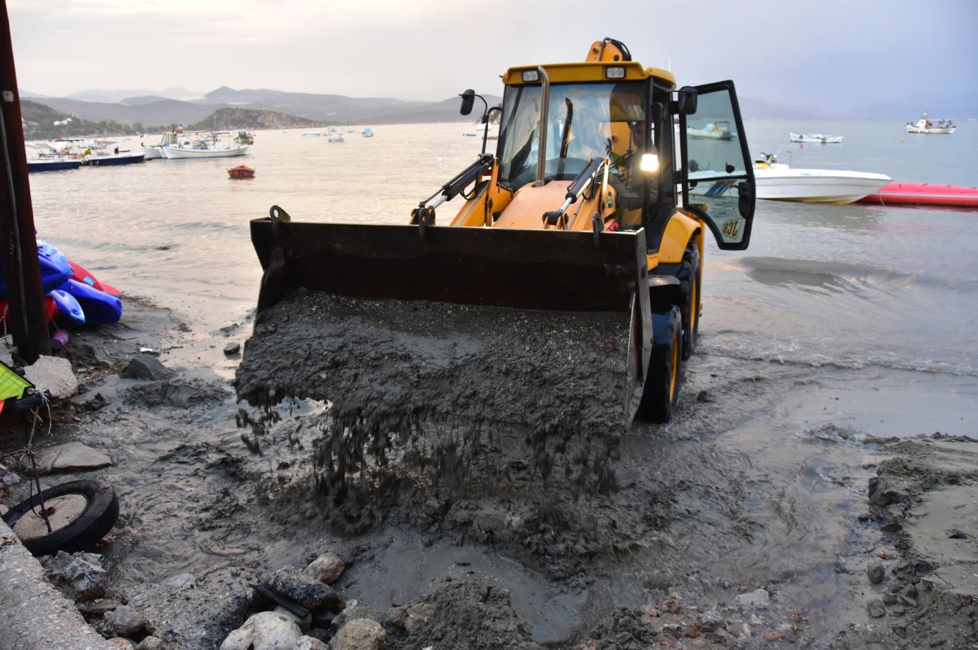 Όπως δήλωσε στο Αθηναϊκό Πρακτορείο, ο δήμαρχος Ναυπλίου Δημήτρης Κωστούρος, η δυνατή βροχή παρέσυρε την άμμο στην παραλία, όπως επίσης και τα νερά που κατέβασε από το βουνό, ο γειτονικός χείμαρρος.