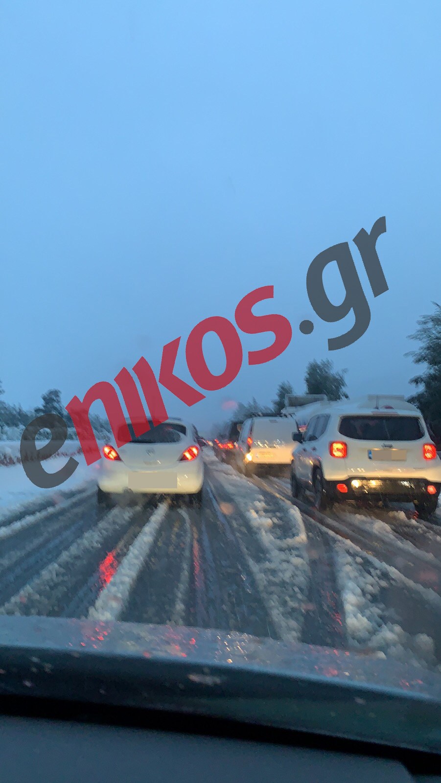 Αναγνώστες του enikos.gr έβγαλαν φωτογραφίες από τις ουρές χιλιομέτρων που συνάντησαν λόγω της χιονόπτωσης και του παγετού στο ύψος του Σταθμού Εξυπηρέτησης Αυτοκινήτων Σείριος.