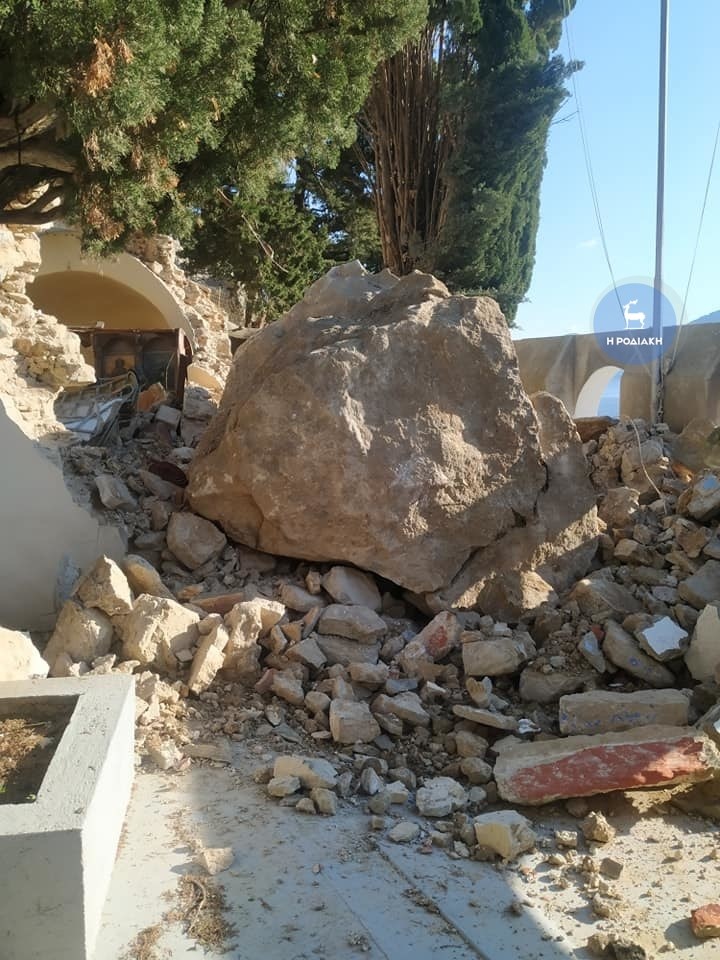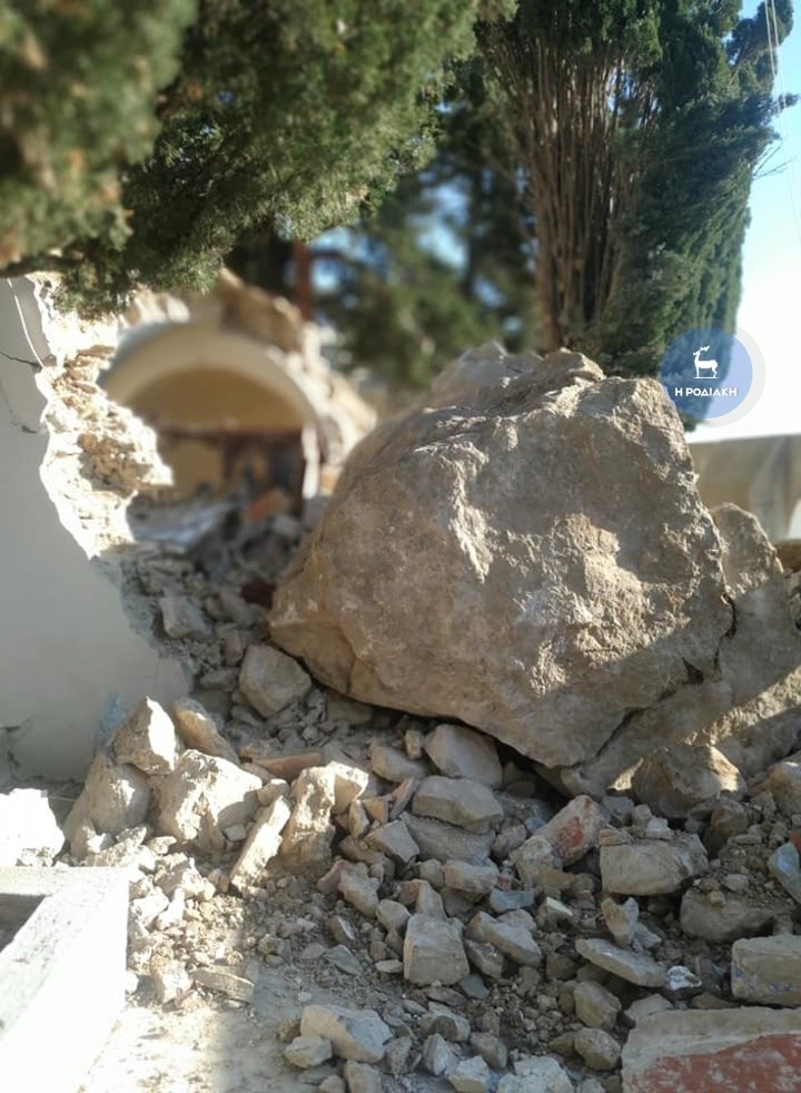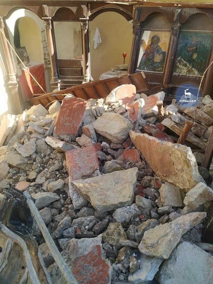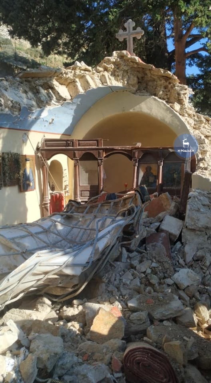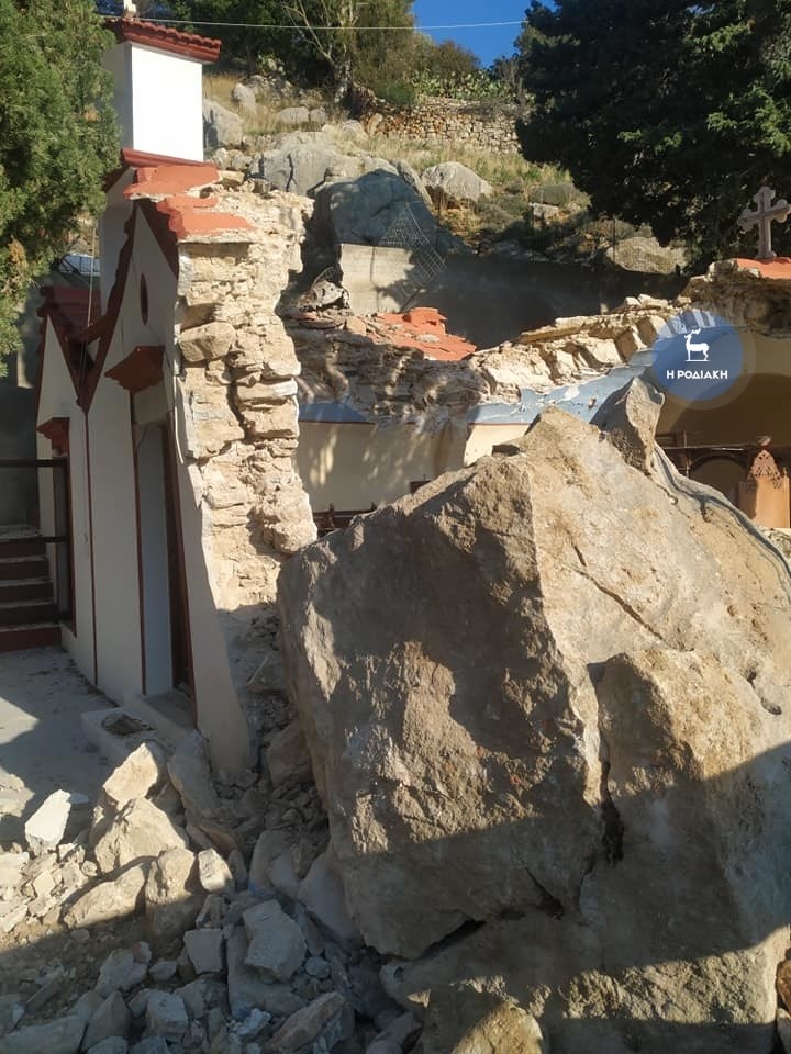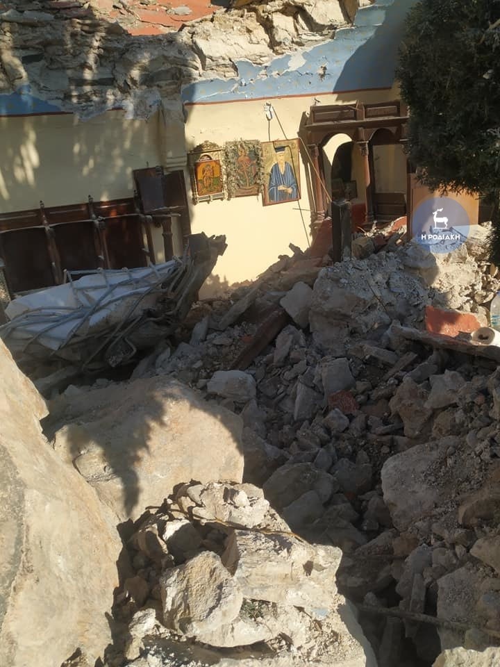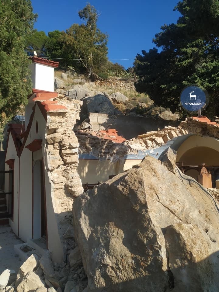 Το παρήγορο είναι πως ο βράχος άφησε άθικτη την Αγία Τράπεζα, δυστυχώς όμως, σύμφωνα με τον κ. Μερκούριο Φαρμακίδη, στην οικογένεια του οποίου ανήκει το μοναστήρι, υπάρχει ένας ακόμη βράχος έτοιμος να καταπλακώσει ο,τι έχει απομείνει στο μοναστήρι. Μάλιστα, όπως επισημαίνει ο κ. Φαρμακίδης, ο Μητροπολίτης Σύμης έχει δώσει εντολή ώστε ειδικά συνεργεία να καταφέρουν να γλυτώσουν το μοναστήρι από την καταστροφή.