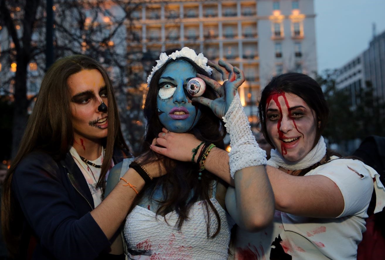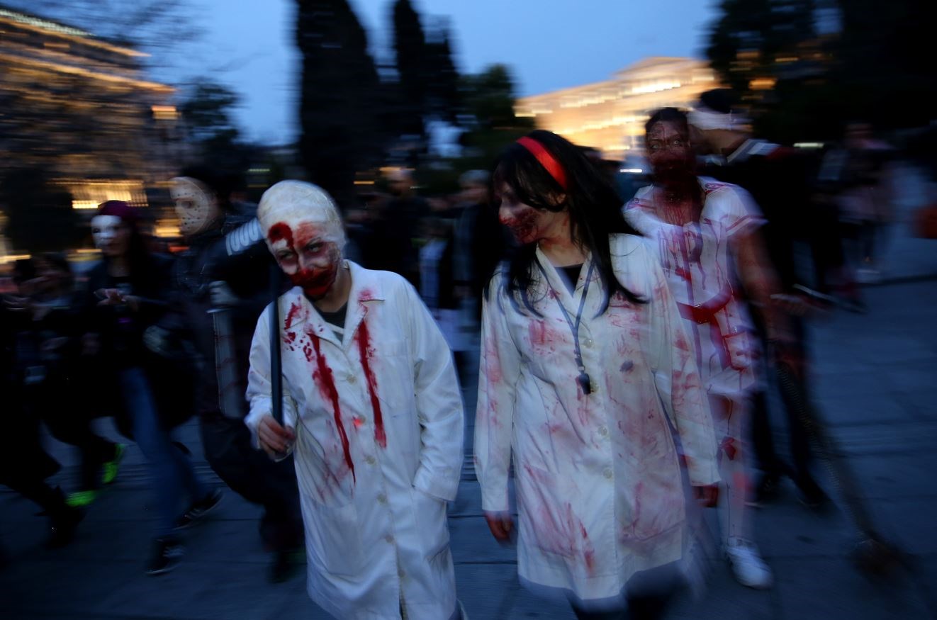 Από μασκαράδες ντυμένους ζόμπι, γέμισε το Σάββατο η Πλατεία Συντάγματος, η Ερμού και το Θησείο στο πλαίσιο της εκδήλωσης Zombie Athens Walk, τον ετήσιο, περίπατο ζόμπι στο κέντρο της πόλης, που φέτος διοργανώθηκε για πέμπτη χρονιά.