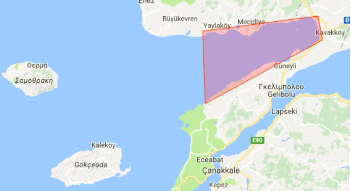 40 38,98 N – 026 48,98 E/40 35,82 N – 026 20,03 E