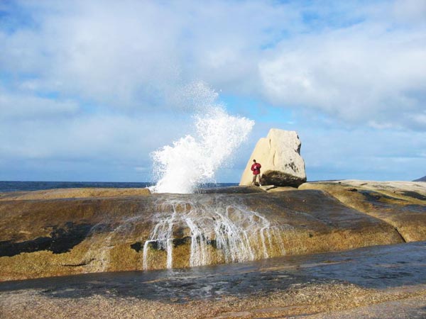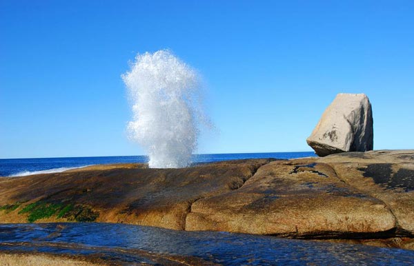 Κοντά στη μικρή πόλη Bicheno στην ανατολική ακτή της Αυστραλίας, στο νησί της Τασμανίας, ένα σπάνιο γεωλογικό φαινόμενο γνωστό ως φυσητήρας (σ.σ. blowhole) προσφέρει ατελείωτες ώρες διασκέδασης στους επισκέπτες.