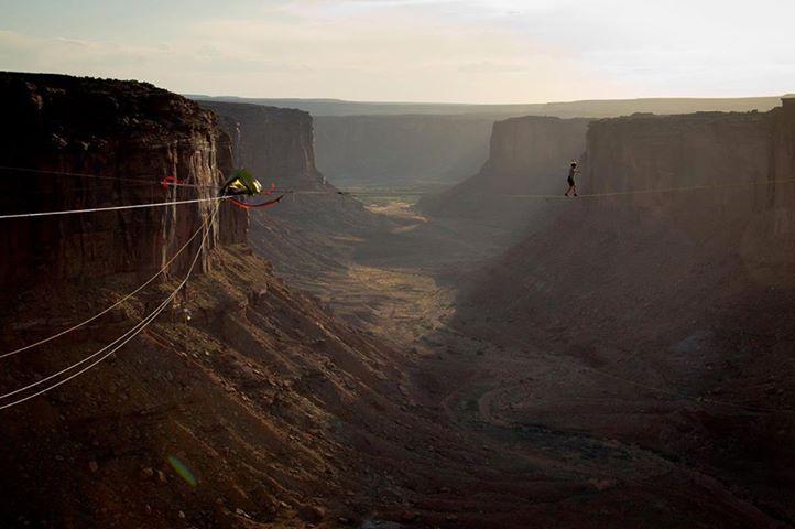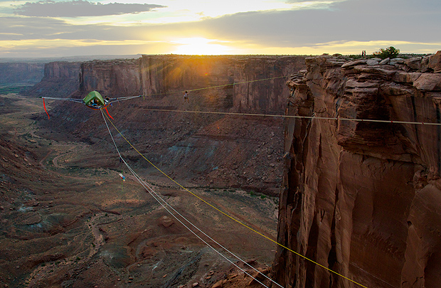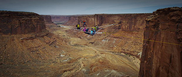 Δένοντας σχοινιά σε τέσσερις βράχους στη Γιούτα, οι φίλοι δημιούργησαν μια «βάση» πάνω στην οποία έστησαν στη συνέχεια τη σκηνή τους απολαμβάνοντας μοναδική θέα σε ύψος 130 μέτρων.