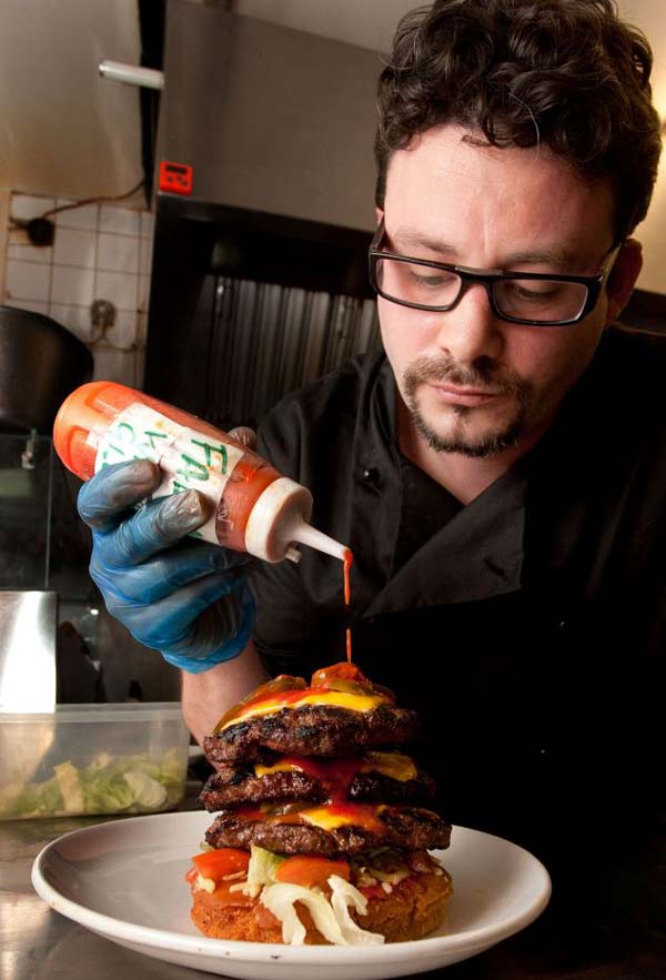 Και το μέγεθος του μπέργκερ είναι σχεδόν τόσο… τρομακτικό όσο πικάντικη γεύση του, με το συνηθισμένο ψωμάκι να αντικαθίστανται από δύο κομμάτια επίσης καυτερή πίτσας, ενώ το γεύμα συνοδεύεται με επιπλέον πικάντικες πατάτες! Ο σεφ James Reilly από το Μπρίστολ, δημιουργός του εν λόγω μπέργκερ, δηλώνει… ανέτοιμος να το δοκιμάσει, την ώρα μάλιστα που προσθέτει επιπλέον μπαχαρικά και καυτερή σάλτσα στο έδεσμα.