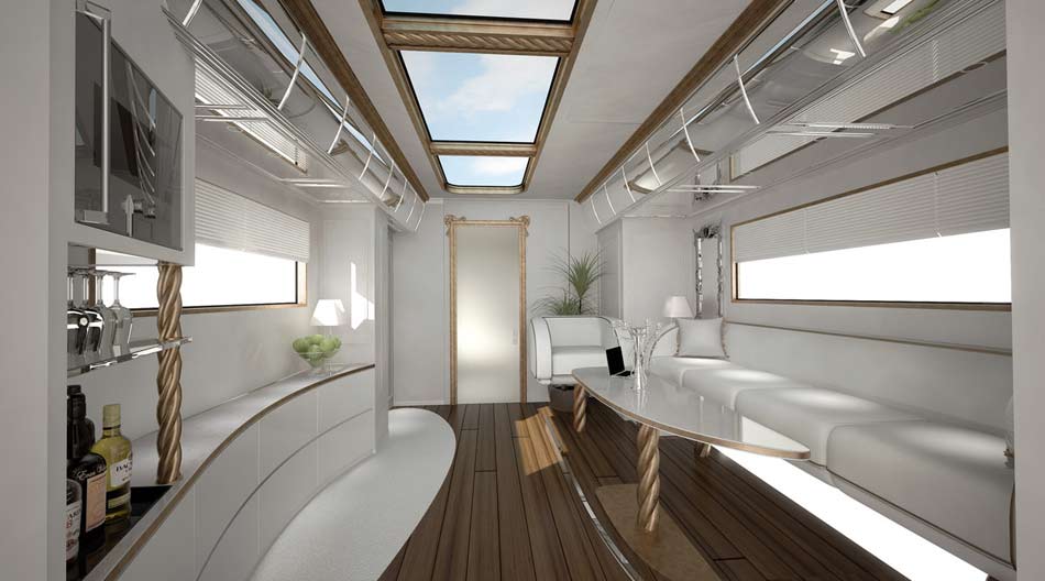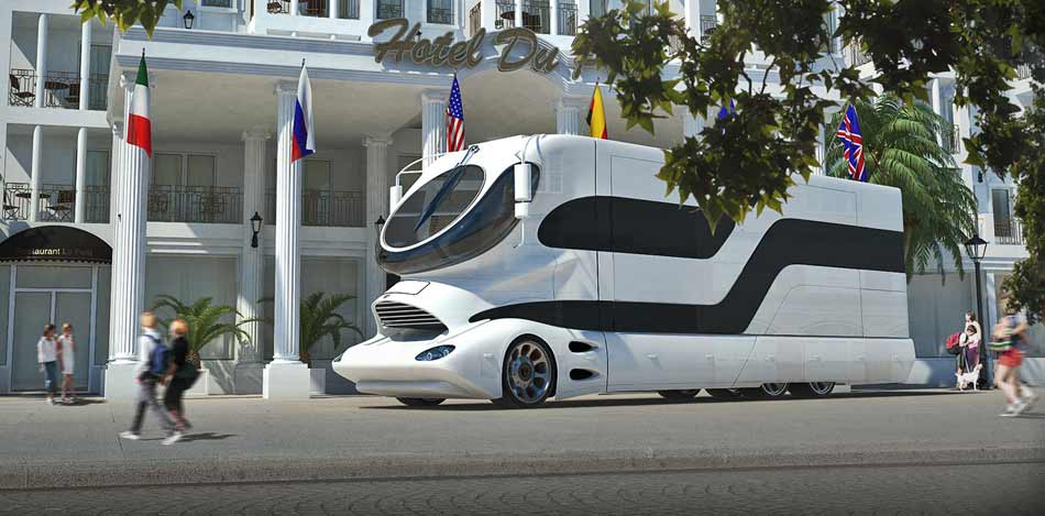 Η ναυαρχίδα των πολυτελών campers ζυγίζει γύρω στους 20 τόνους και για το λόγο αυτό χρειάζεται ένα ισχυρό μοτέρ για να κινηθεί αξιοπρεπώς.