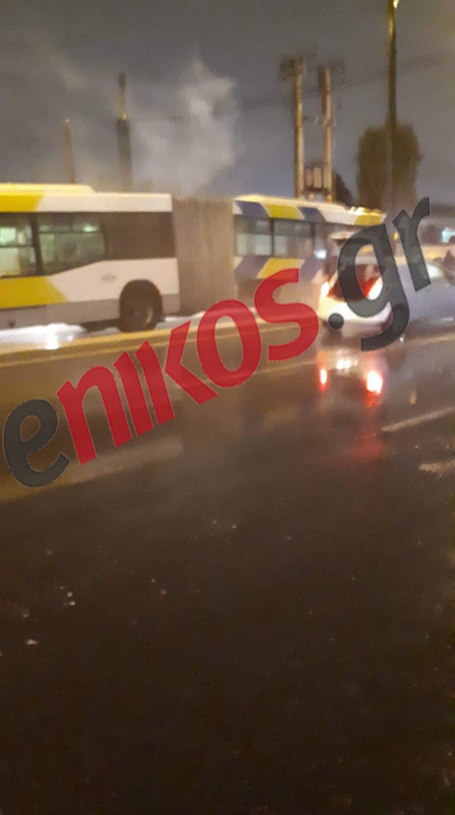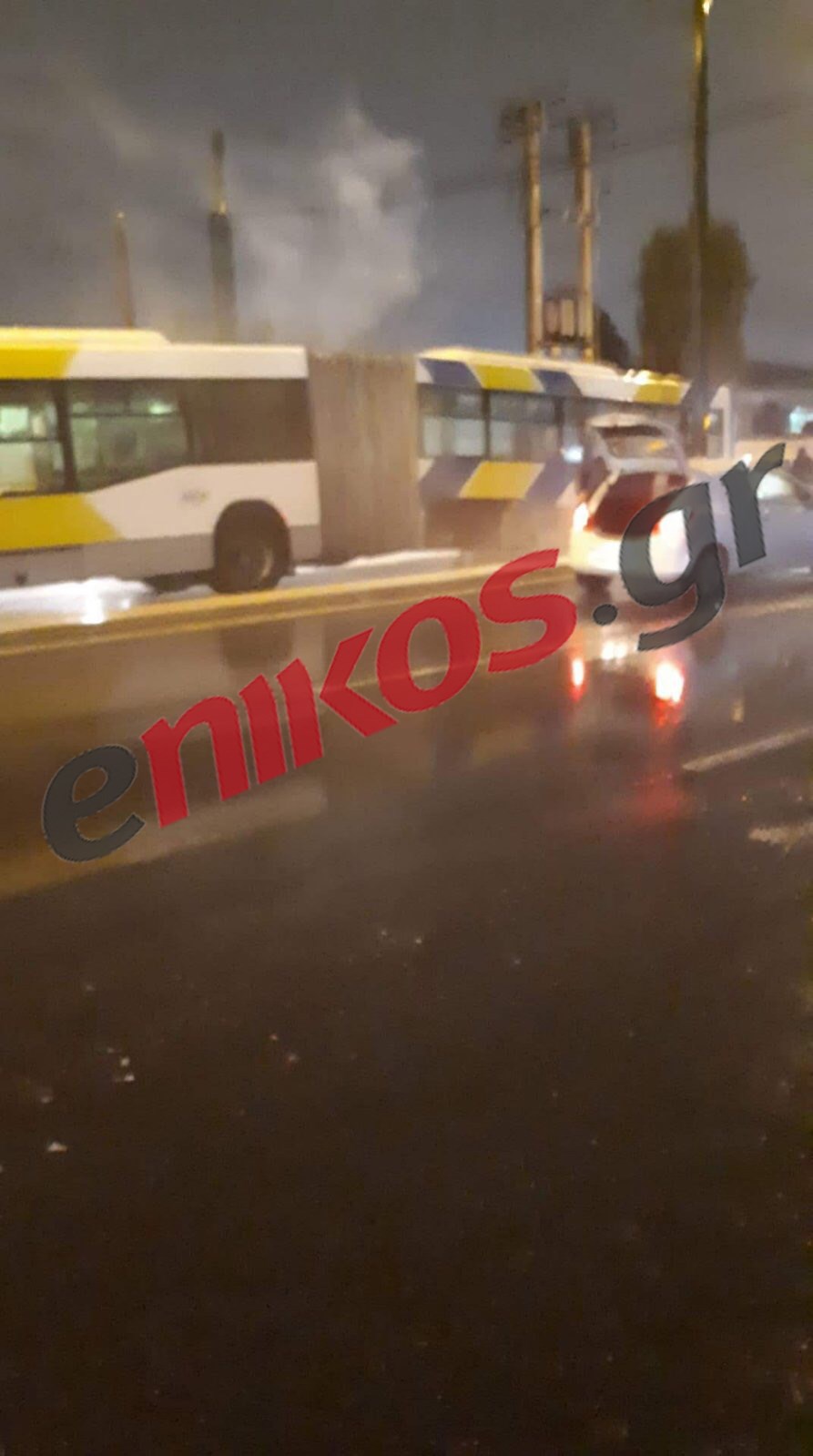 Το λεωφορείο που βλέπετε ήταν στο φανάρι περίπου στις 8.30 το βράδυ της Δευτέρας και περίμενε να μπει στο Αμαξοστάσιο της Πέτρου Ράλλη, όταν πήρε φωτιά και έβγαζε καπνούς. Το λεωφορείο είχε σχολάσει και δεν είχε κόσμο.