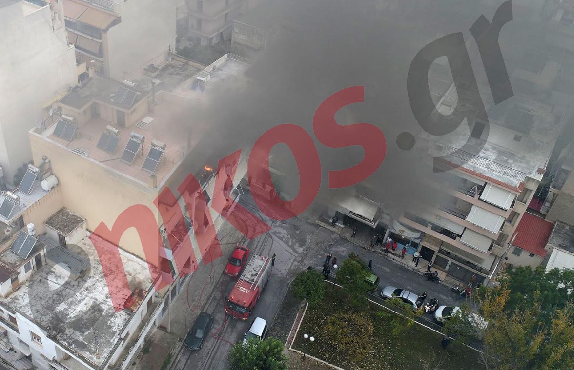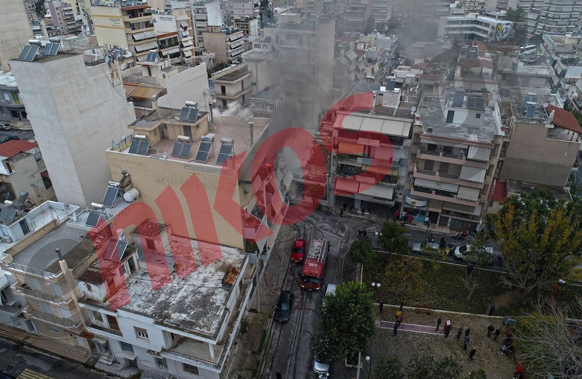 Ο επαγγελματίας χειριστής drone Χρήστος Γιατράκος έστειλε φωτογραφίες στο enikos.gr και όπως μπορείτε να δείτε οι φλόγες ξεπηδούν μέσα από το διαμέρισμα.