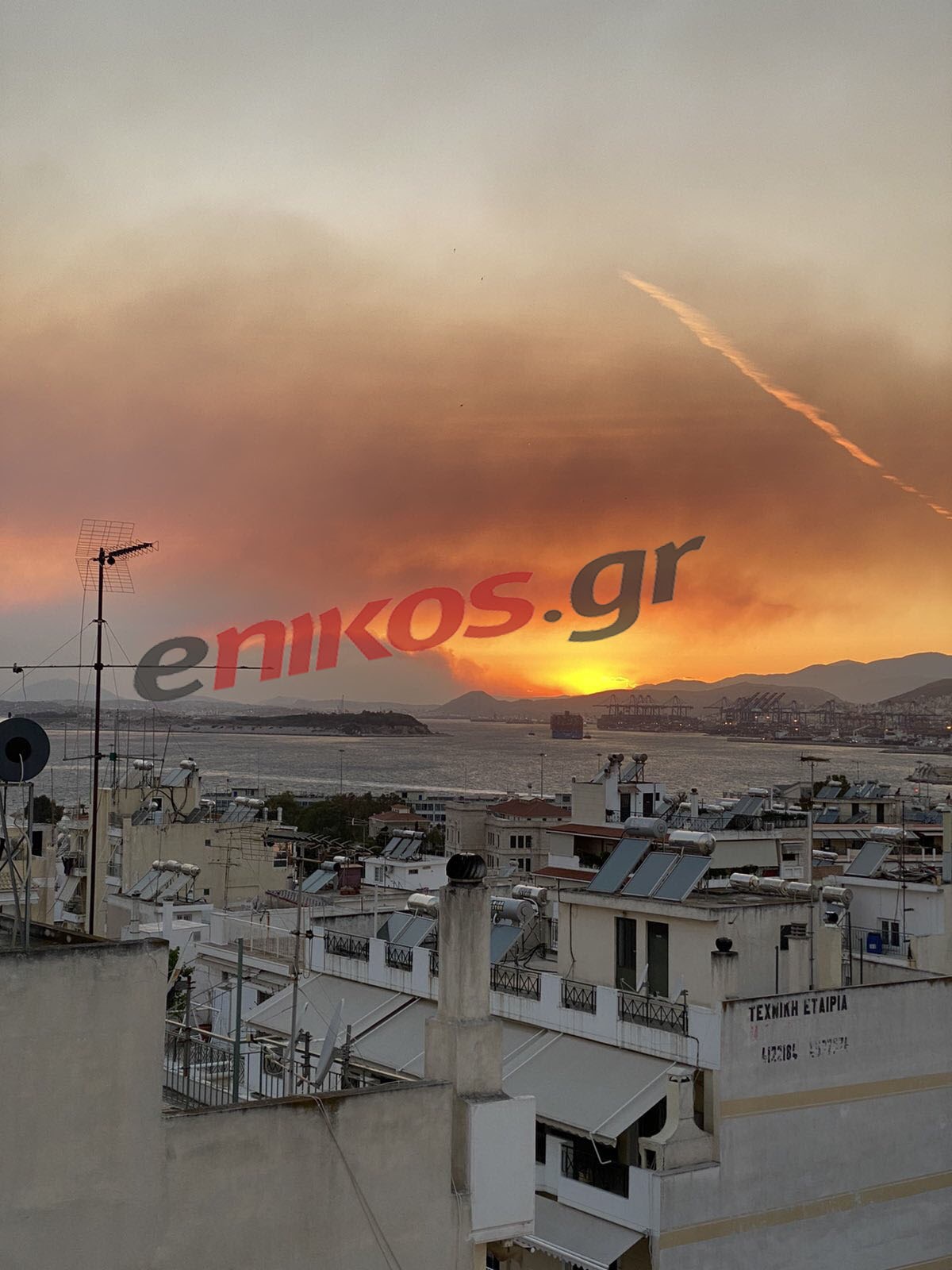 Η μεγάλη φωτιά στον Σχίνο Κορινθίας μαίνεται από χθες. Όπως φαίνεται στη φωτογραφία που έστειλε αναγνώστης του enikos.gr από τον Πειραιά, ο καπνός έχει σκεπάσει τον ουρανό, ενώ το ηλιοβασίλεμα ίσα που φαίνεται! Σε αρκετές περιοχές των νοτίων προαστίων ο καπνός είναι εμφανής.