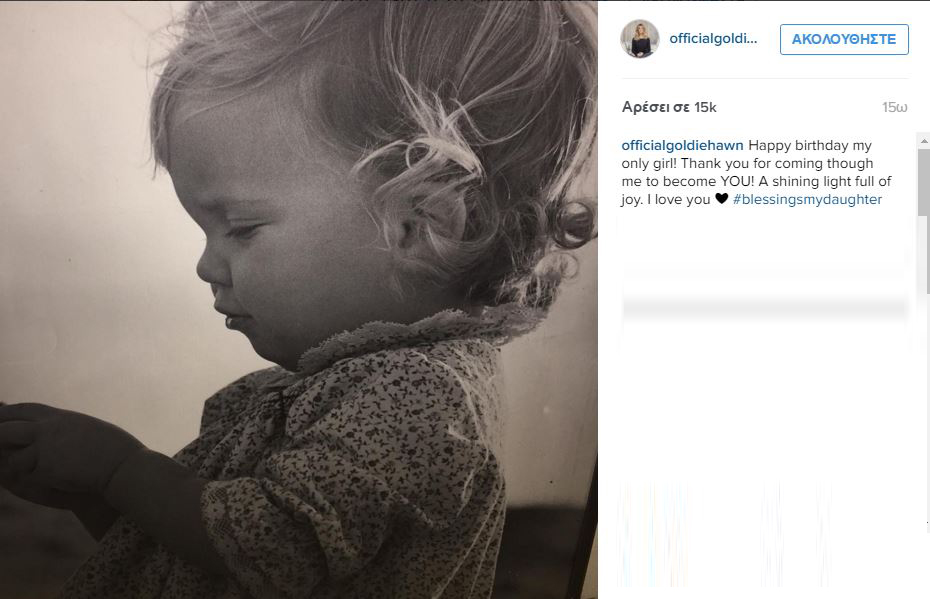 Στη συνέχεια η μητέρα της, Γκόλντι Χόουν, πόσταρε μία παιδική φωτογραφία της Κέιτ Χάντσον στο instagram, όπου της έγραψε ότι την αγαπά πολύ γι΄ αυτό που είναι. “Ένα λαμπρό φως γεμάτο χαρά” σχολίασε χαρακτηριστικά.