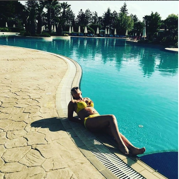 Μέσω Instagram, η Άντζελα Δημητρίου δημοσίευσε μια φωτογραφία της στην οποία ποζάρει ξαπλωμένη ανάσκελα δίπλα στην πισίνα, φορώντας ένα κίτρινο μπικίνι.