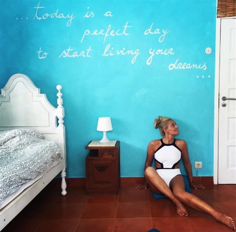 Η παρουσιάστρια πόζαρε φορώντας λευκό μαγιό, μέσα σε ένα δωμάτιο, του οποίου ο τοίχος παραπέμπει σε θάλασσα, με την ίδια να στέλνει το δικό της μήνυμα.