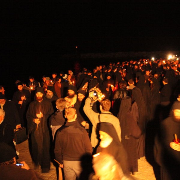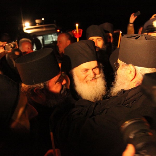 Μια “λαοθάλασσα” μοναχών και λαικών περίμενε τον ηγούμενο της Μονής Βατοπεδίου Εφραίμ στην επιστροφή του στο Άγιο Όρος. Το βράδυ του Σαββάτου η Μονή ήταν γεμάτοι από τους “φανατικούς υποστηρικτές του”.