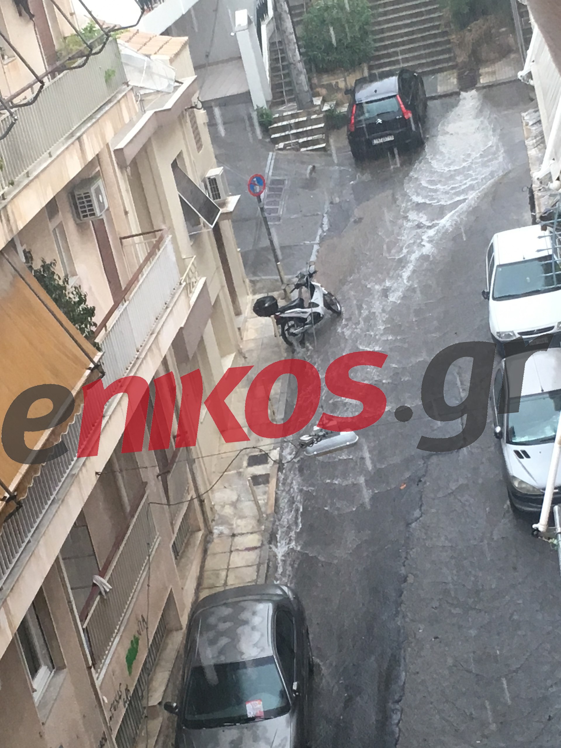 Οι δρόμοι πλημμύρισαν όπως φαίνεται και στις φωτογραφίες που έστειλε αναγνώστης του enikos.gr.